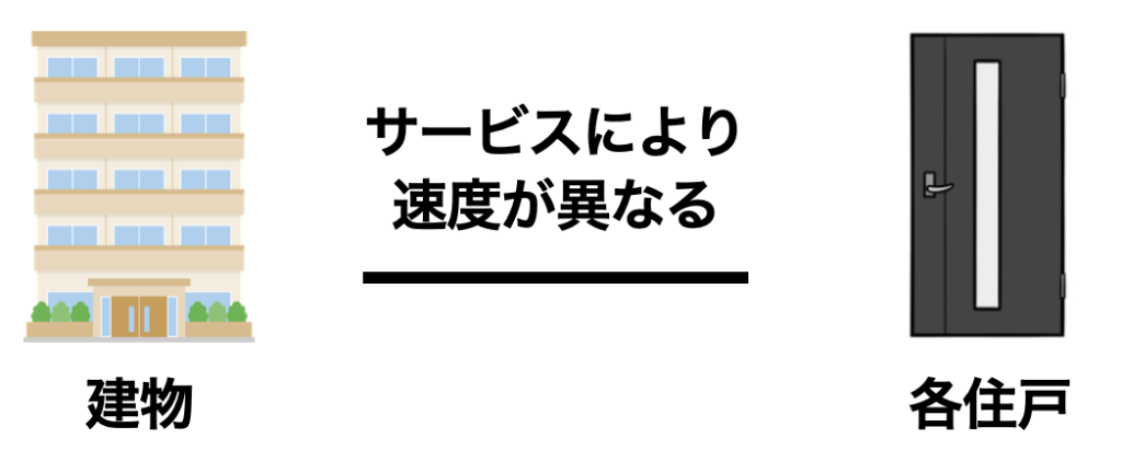 しかし、建物から各住戸までは回線の種類異なり、インターネット事業者のサービスによって速度が変わります。
