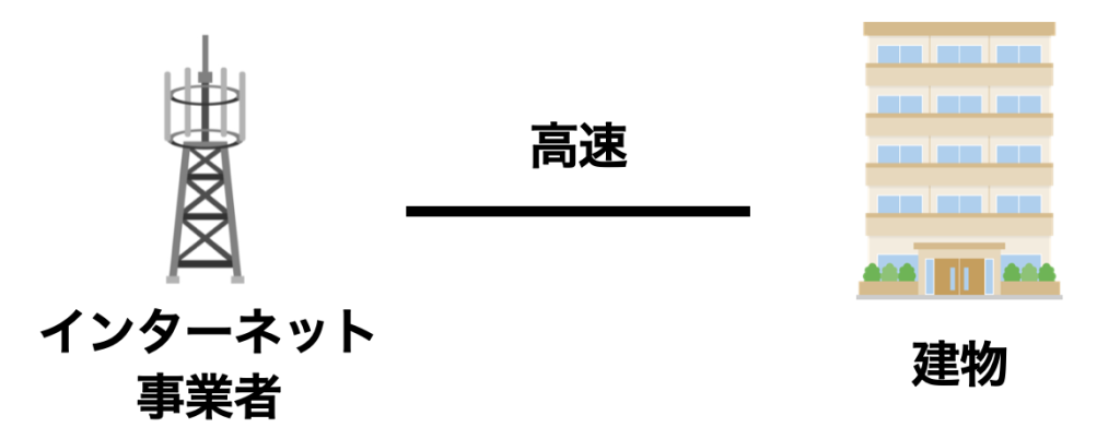 インターネット事業者から建物までは高速の回線が通っていて、どこの事業者を選んでも速度はほとんど変わりません。